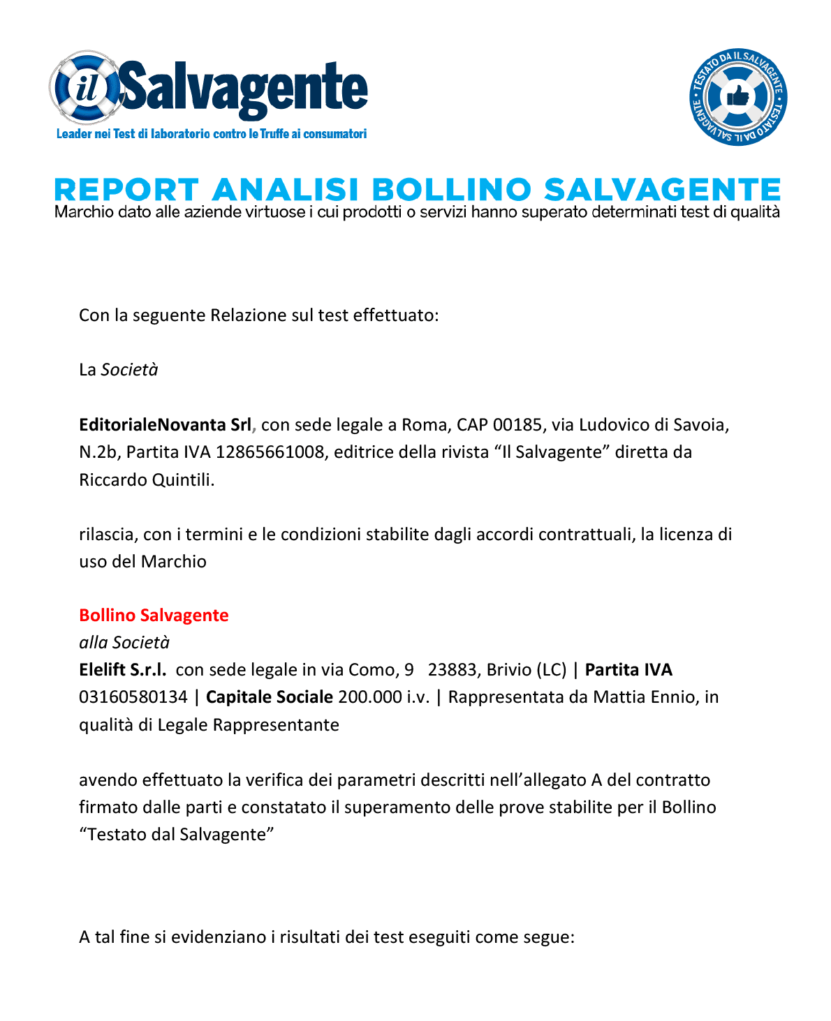 Bollino rilasciato da Editorialenovanta srl il 27/01/2026 sulla base dei risultati delle verifiche indipendenti disponibili su questa pagina, dietro pagamento di una licenza d’uso temporanea valida fino al 26/07/2026.